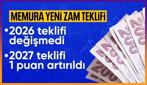 6,5 milyon memur ve memur emeklisinin 2026 ve 2027 yıllarını kapsayan toplu sözleşme zammında 2026 yılı için verilen zam teklifinde değişiklik yapılmazken, 2027 yılının ilk 6 ayı için teklif 1 puan artırılırken diğer 6 ayı için teklif sabit kaldı.