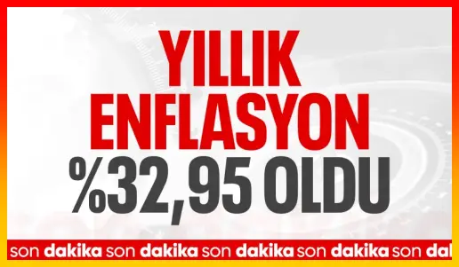 Tüketici fiyat endeksi (TÜFE) yıllık %32,95 arttı, aylık %2,04 arttı.