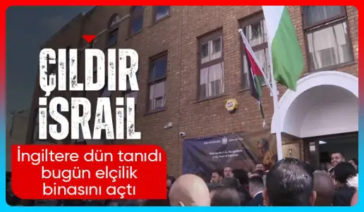 İngiltere’nin Filistin’i devlet olarak tanımasının ardından Londra’daki Filistin Büyükelçiliği önünde bayrak töreni düzenlendi.