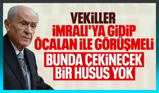 Partisinin grup toplantısında ‘Terörsüz Türkiye’ sürecine ilişkin değerlendirmelerde bulunan MHP Genel Başkanı Devlet Bahçeli, komisyon üyelerinin İmralı’ya gitmesi gerektiğini söyledi. Bahçeli “Bunda çekinilecek bir husus görmüyorum” dedi.
