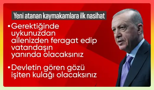 “Devletin sahadaki eli, gözü ve kulağı olacaksınız” diyen Cumhurbaşkanı, kaymakamların vatandaşla doğrudan temas halinde olmaları gerektiğini belirtti. “Dört duvar arasında, mesai saatine sıkışmış bir yönetim anlayışıyla başarılı olamazsınız” dedi.
