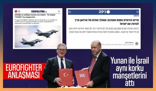 Cumhurbaşkanı Erdoğan ile İngiltere Başbakanı Keir Starmer, iki ülke arasında Eurofighter Typhoon savaş uçağına ilişkin iş birliği anlaşması imzaladı. 44 adet Eurofighter’ı kapsayan bu anlaşma, başta Yunanistan ve İsrail olmak üzere dünya basınında geniş yankı buldu.