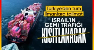 Türkiye’nin İsrail bağlantılı gemi trafiğini kısıtladığı bildirildi. Türkiye’nin İsrail bağlantılı gemi trafiğinin kısıtlanmasıyla ilgili olarak acentelere ve liman başkanlıklarına talimat verildiği aktarıldı. Türkiye’den İsrail bağlantılı gemi trafiğine kısıtlama… Reuters’ın haberine göre Türkiye, İsrail bağlantılı gemi trafiğine kısıtlama getirdi. Türkiye’nin İsrail bağlantılı gemi trafiğini kısıtlamasına ilişkin acente ve liman başkanlıklarına talimat …