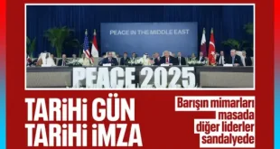 Şarm el-Şeyh’te dünya liderlerinin katılımıyla düzenlenen tarihi Gazze zirvesinde, Gazze’de ateşkes anlaşması ABD, Türkiye, Mısır ve Katar liderleri tarafından imzalandı. ABD Başkanı Donald Trump, Mısır’da düzenlenen Şarm el-Şeyh Barış Zirvesi’nde Katar Emiri Şeyh Temim bin Hamed Al Sani, Mısır Cumhurbaşkanı Abdulfettah es-Sisi ve Türkiye Cumhuriyeti Cumhurbaşkanı Recep Tayyip Erdoğan ile …